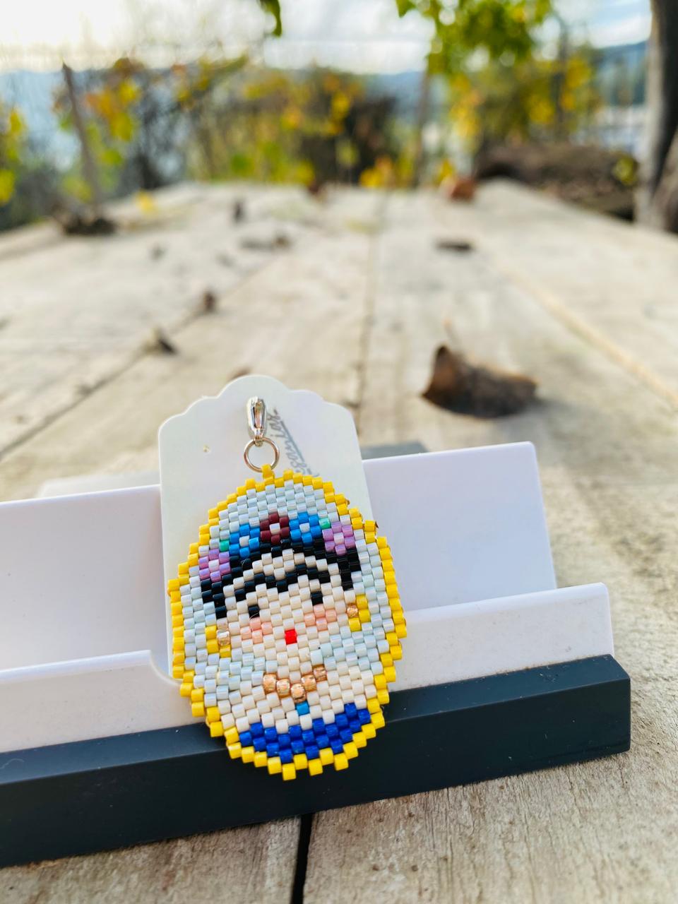 con gancho de acero inoxidable para colocar en collar, pulseras, llaves, etc. Realizado en mostacilla de vidrio.